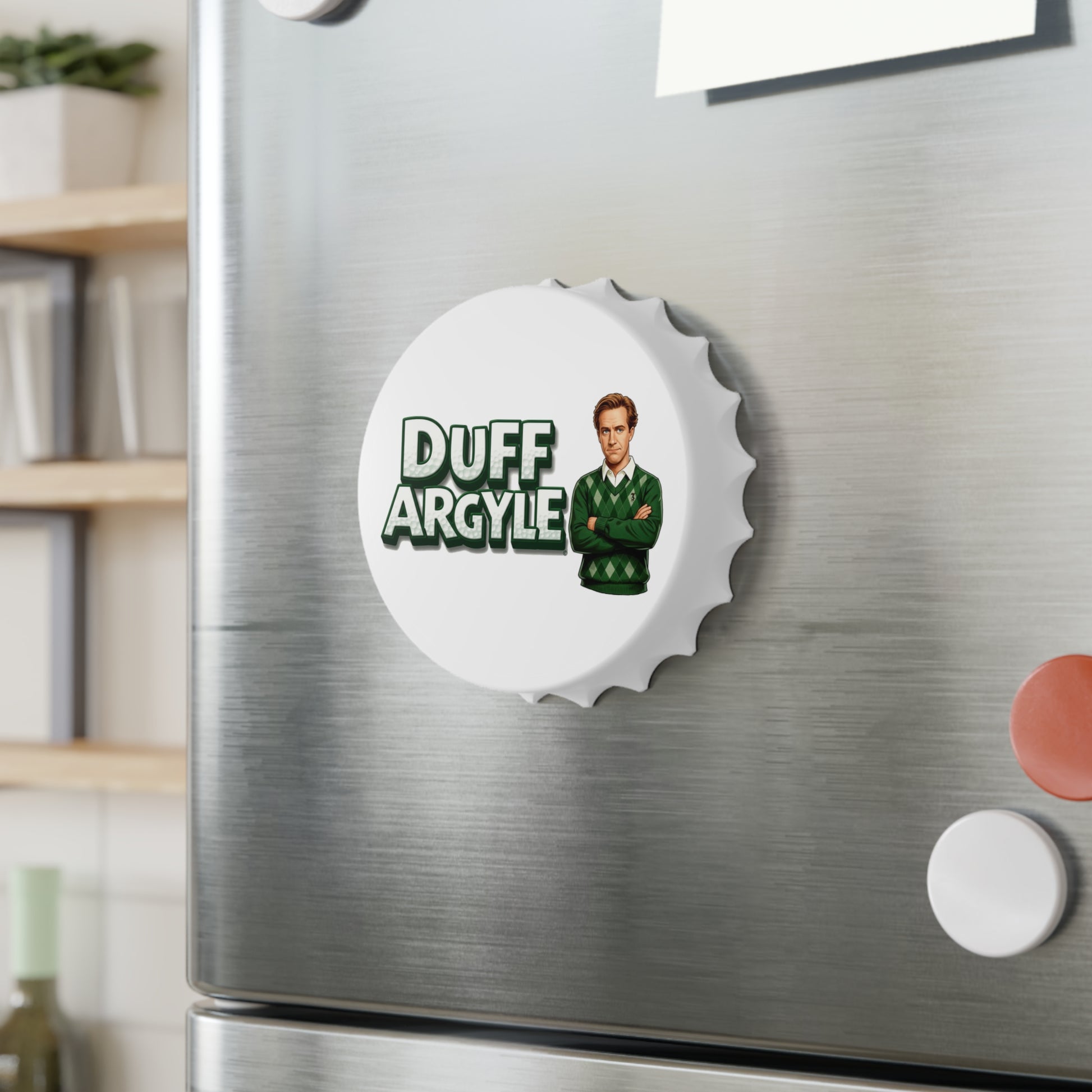 GOLF NOIR Megastar DUFF ARGYLE stars in this sleek and functional Bottle Opener. Designed for both style and practicality, this opener features an eye-catching design that is sure to be a conversation starter. Perfect for on-course, BBQs, or your own personal 19th hole, this tool seamlessly merges utility with flair. It's an ideal gift for golfers who love to host or enjoy their beverages in style, making it suitable for birthdays, holidays, and celebrations such as Father’s Day or housewarming parties. Bring a touch of humor to your barware collection with DUFF ARGYLE!