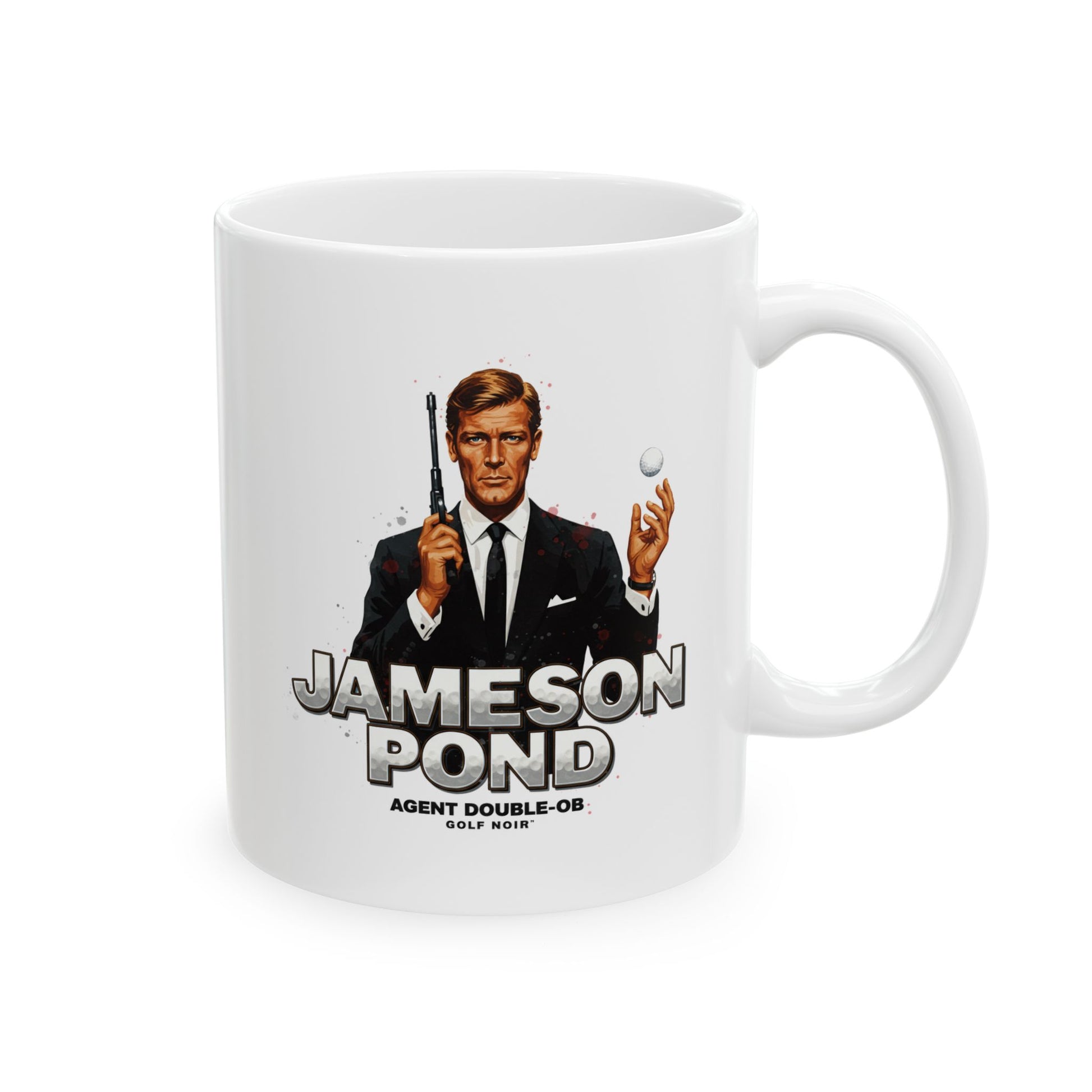 GOLF NOIR Megastar JAMESON POND is Agent Double-OB helps you enjoy your favorite beverages in style with this vibrant **Ceramic Mug**. Crafted from glossy ceramic, it showcases our stunning design, bringing a chuckle to each sip. Ideal for cozy mornings or afternoon breaks, this mug brings a humorous start to your daily round. It’s perfect for coffee lovers, tea aficionados, or anyone who appreciates unique drinkware. This mug makes a thoughtful gift for occasions like birthdays, holidays, father’s day, or as a great conversationstarter! Jazz up your own private 19th Hole with a featured foursome of your selection from GOLF NOIR today!