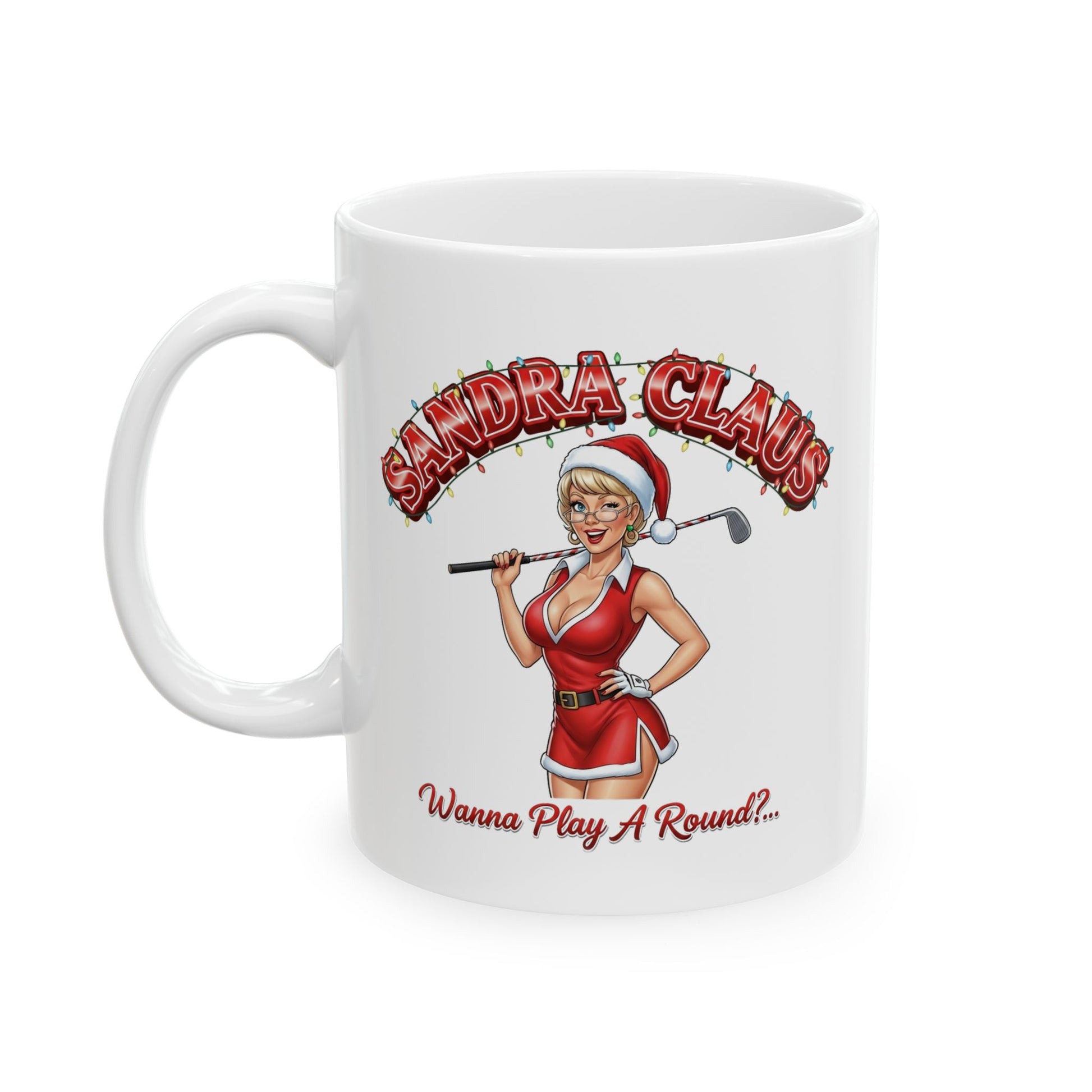 SANDRA CLAUS Holiday Mug - Wanna' Play A Round?..